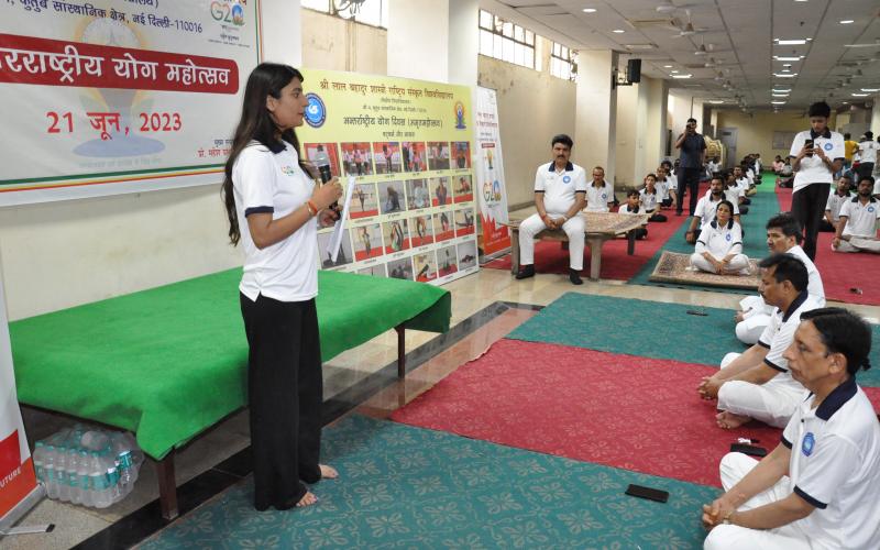 • On June 21, 2023, 'International Yoga Day' was celebrated under the chairmanship of the Honorable Vice-Chancellor. The general yoga protocol was practiced by the university family and all the students